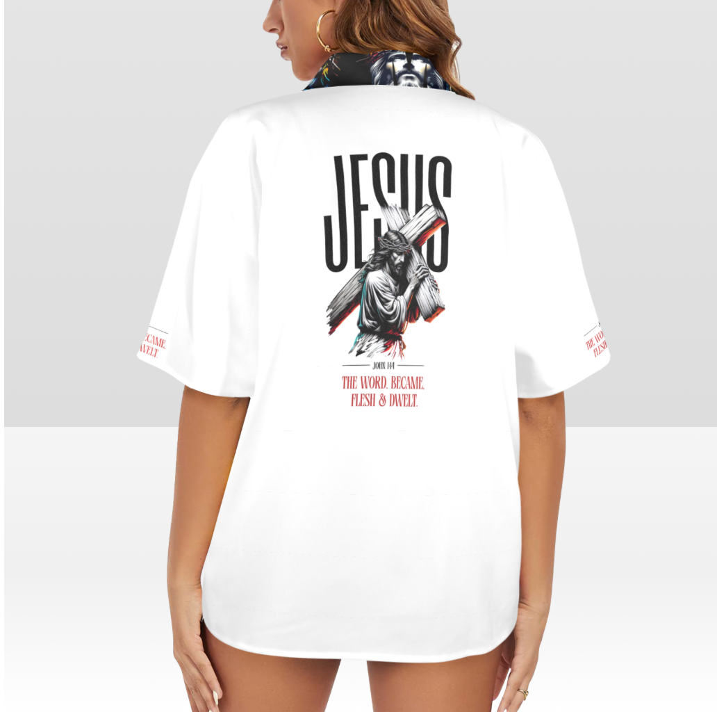 RISEN button up WHITE Men's All Over Print Casual Dress Shirt (Model T61)